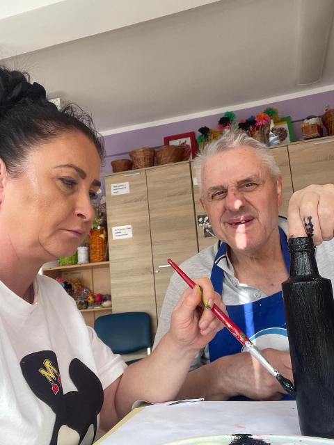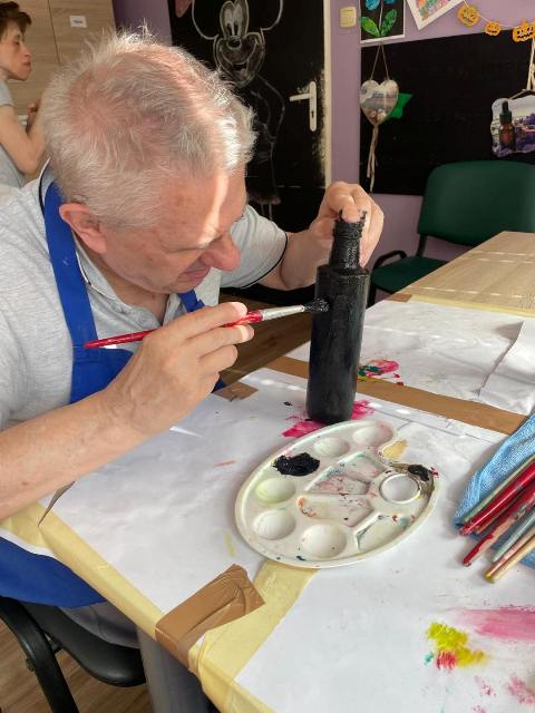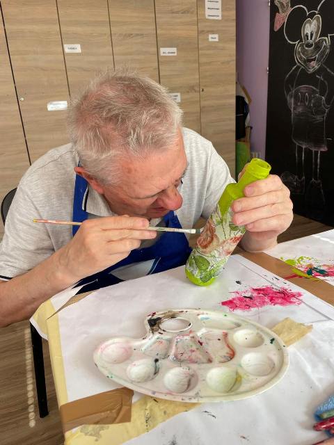 Początek tygodnia w pracowni Rewalidacji rozpoczął się od arteterapii- malowanie farbą wazonów oraz decoupage.