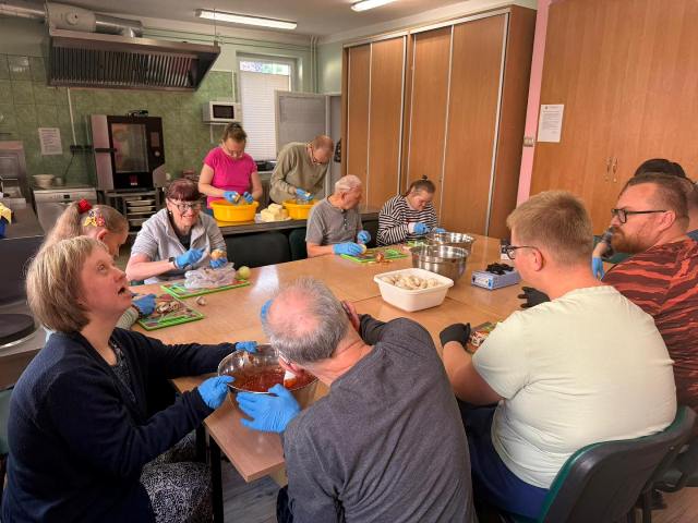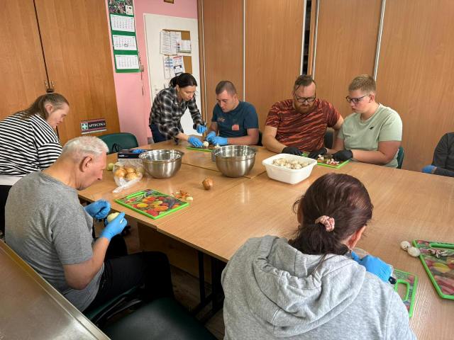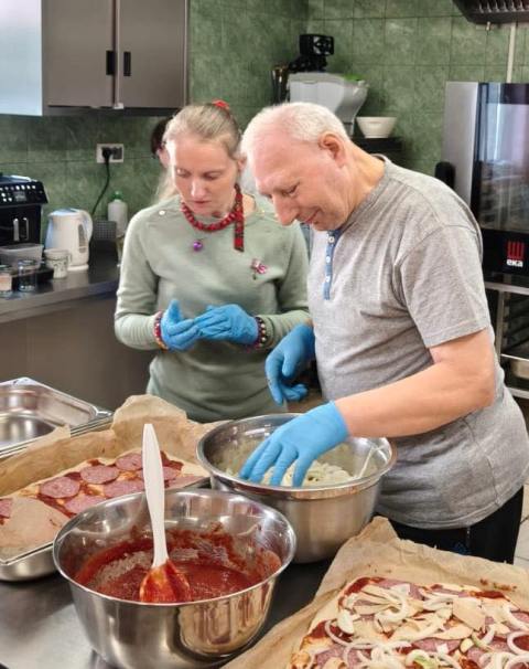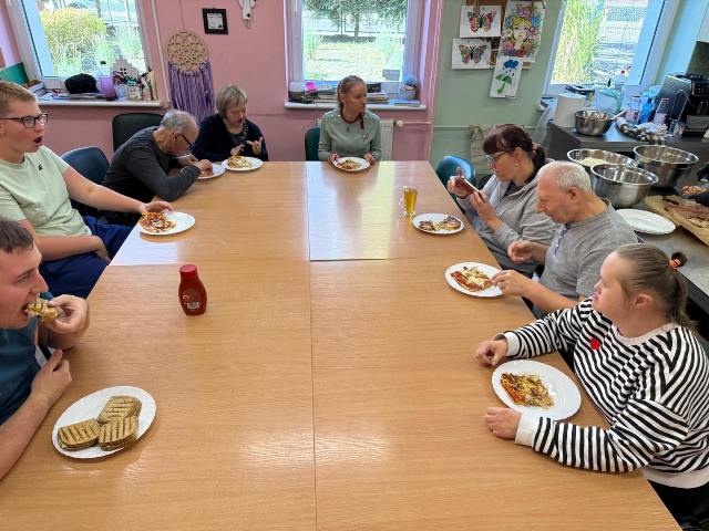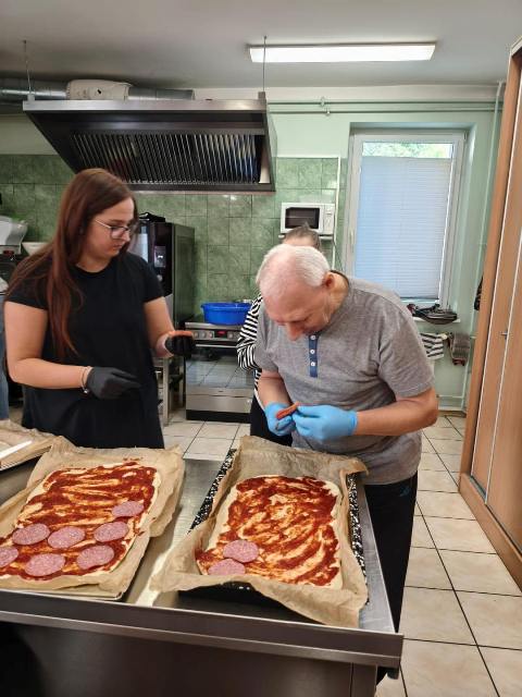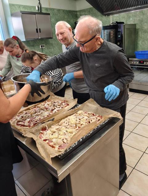 Wczoraj odwiedzili naszych uczestników koledzy z OREW-u. Wspólnie wzięliśmy udział w zajęciach kulinarnych tworzenia najlepszego posiłku… no przecież Kto nie lubi pizzy?!