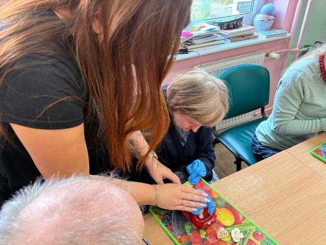 Było przy tym pełno śmiechu i radości, ale także zaangażowania i skupienia, szczególnie przy nauce precyzyjnego krojenia produktów.