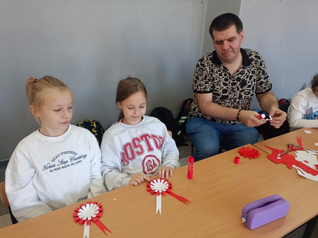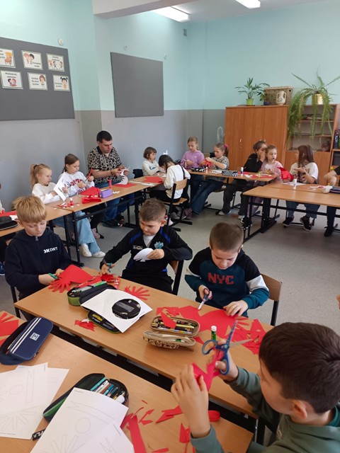 Dziś uczestnicy naszego Warsztatu Terapii Zajęciowej spotkali się z uczniami klasy 3 Szkoła Podstawowa nr 17 w Koszalinie, by wspólnie świętować rocznicę odzyskania przez Polskę niepodległości – 11 listopada. Podczas zajęć nie zabrakło rozmów o historii, wspólnego śpiewania pieśni patriotycznych oraz twórczych działań plastycznych. To był piękny czas integracji, nauki i radości ze wspólnego świętowania!