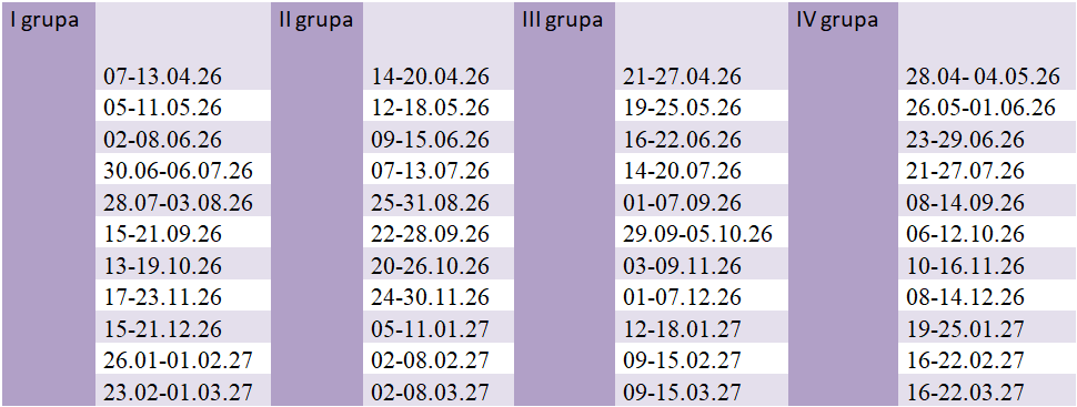 Grafik treningów w podziale na grupy: