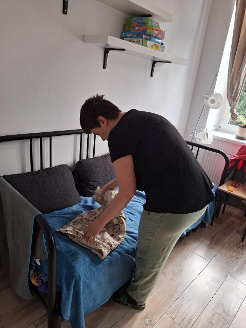 Podczas treningu kulinarnego zaczynaliśmy od przygotowania listy zakupów. Następnie chodziliśmy razem do sklepu. Uczyliśmy się wybierać potrzebne produkty i porównywaliśmy ich ceny. Wspólnie przygotowywaliśmy proste posiłki takiej jak kotlety schabowe, czy rosół. Dzięki temu każdy z nas mógł spróbować swoich sił w kuchni. W czasie wolnym też spędzaliśmy chwile razem. Poszliśmy na kręgle, gdzie było dużo zabawy i śmiechu. Byliśmy również w kinie, co pozwoliło nam miło spędzić czas poza mieszkaniem i zintegrować się.