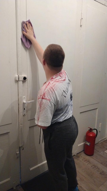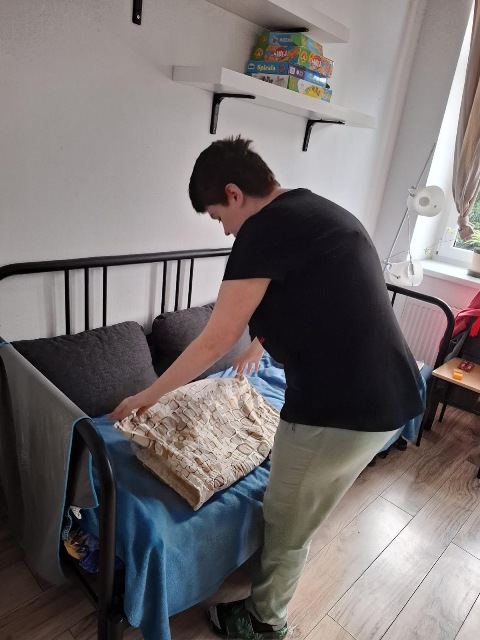Miesiąc wrzesień upłynął Nam bardzo szybko w dobrym towarzystwie. W ramach treningu czystości uczyliśmy się, jak dbać o porządek w domu. Sprzątaliśmy aneks kuchenny, odkurzaliśmy przestrzeń wspólną oraz myliśmy okna, dzięki temu w mieszkaniu zrobiło się jaśniej i schludniej. Prasowaliśmy ubrania – na początku niektórzy mieli trudności, ale z czasem szło nam coraz lepiej. Doskonaliliśmy umiejętność obsługi pralki- ustawianie odpowiednich programów oraz użycie odpowiedniej ilość detergentów.